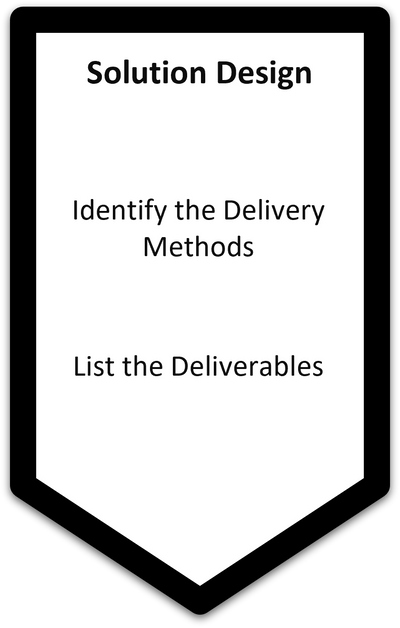 This stage captures the proposed solution to the problem we're trying to solve. Each element of the solution needs to be the product of the Scope Analysis and the Goals and Analysis stages.